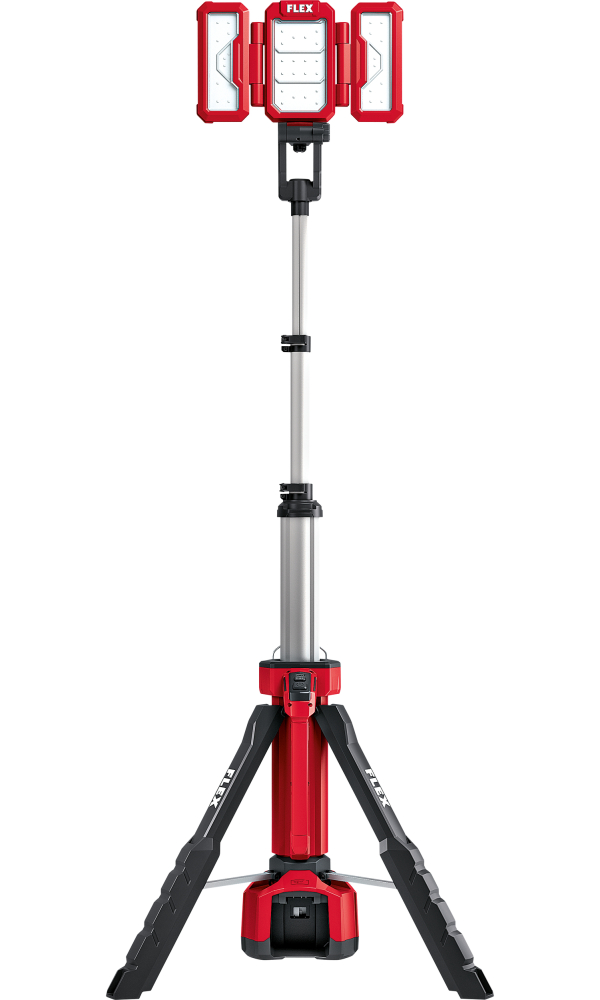 Výkonná aku-lampa s 3 stupňami svietivosti, 1000, 2000 a 4000 Lumenov. Multifunkčné svietidlo je možné prevádzkovať samostatne s 18V akumulátorom ako pracovné osvetlenie. Je možné ho upevniť pomocou háčikov alebo upevniť na statív. Tri svetelné panely na dvoch osiach otáčania umožňujú ľubovoľné polohovanie uhla osvetlenia. Svetlo je možné ostriť jedným smerom alebo prepnúť na plošné osvetlenie.Výškovo nastaviteľná pracovná poloha stavitu v rozsahu 1,1 - 2,2 m. Statív je vybavený závitom 1/4" a je možné ho použiť aj pre ďalšie zariadenia, ako sú čiarové lasery alebo kamery atď. Hlava svietidla otočná o 180 °. Multifunkčný ovládací panel s LED indikátorom úrovne nabitia akumulátora, vypínačom a nabíjacím portom USB-C. Druhý vypínač umožňuje pohodlné ovládanie svetla v polohe rukoväte na statíve. Vysoká stabilita a rýchla montáž stavitu ovládaná jediným tlačidlom. Svetlomet je možné napájať priamo aj zo siete bežným káblom na pripojenie iných zariadení (nie je súčasťou dodávky). Vhodné na prevádzku na 230 V alebo 110/120 V. FLEX Aku-systém: prevádzka so všetkými FLEX 18 V akumulátormi.