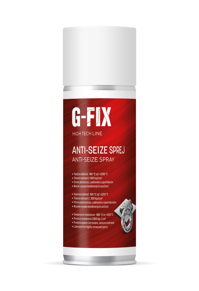ANTI – SEIZE SPREJ G-FIX je excelentné a výkonné mazivo na mazanie vysoko staticky namáhaných súčastí pri pôsobení nízkych i vysokých teplôt. Vďaka svojim mazacím schopnostiam nájde uplatnenie širokého spektra náročných aplikácií. Výborne znáša tlakové zaťaženie, koróziu, zadretie, oxidáciu a znižuje opotrebenie.• Teplotná odolnosť -180 °C až + 1200 °C.