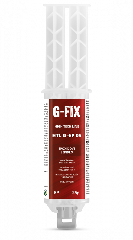 HTL G-EP 05 je dvojzložkové konštrukčné epoxidové lepidlo, ktoré má široké spektrum použitia v oblasti výroby, montáže a opráv. Zaisťuje spojenie rozdielnych materiálov a vyznačuje sa vysokou pevnosťou v ťahu, vysokou rázovou pevnosťou rovnako ako vynikajúcou rezistenciou voči zmenám a odlupovaniu. HTL G-EP 05 je vhodný na lepenie náročných spojov a preto je to ideálny výrobok na rozličné použitie. Vhodné napr. na lepenie kovov, plastov, skla, dreva, kože a keramiky.Schopnosť vyplňovať škáru: 3mm