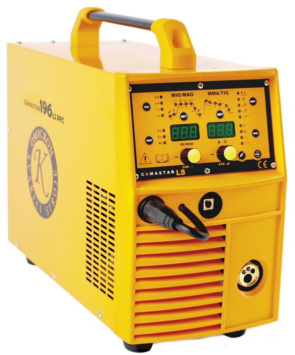 Profesionálny multifunkčný stroj pre zváranie MIG / MAG na 230 V, kombinovaný s možnosťou zvárať aj obalenou elektródou a metódou TIG - LIFT ARC.Invertorový, jednofázový zdroj určený pre zváranie obalenou elektródou (MMA), drôtom v ochrannej atmosfére (MIG / MAG) a netaviacou sa volfrámovou elektródou (TIG). Vďaka veľmi dobrým zváracím vlastnostiam, vysokému výkonu, spoľahlivosti, univerzálnosti, nízkej hmotnosti a širokej výbave je zdroj GAMASTAR 196LS PFC vhodný k profesionálnemu využitiu vo výrobe, údržbe, na montážach, autoservisoch aj v domácej dielni.