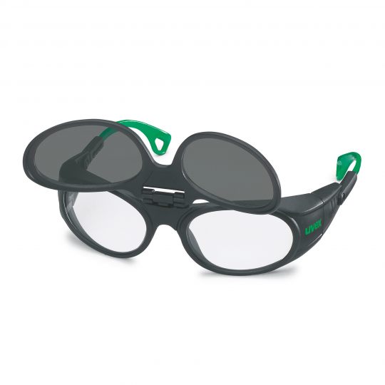 Okuliare s vymeniteľným vyklápateľným filtrom. Čierno-zelený rám a sivý zorník z polykarbonátu chránia pred časticami zdola vďaka špeciálne tvarovanému okraju a s anatomicky tvarovaným nosovým mostíkom. Spoľahlivá ochrana vďaka dokonalému nasadeniu: viacstupňový sklon straničiek a nastavenie dĺžky straničiek umožňujú individuálne prispôsobenie akýmkoľvek kontúram tváre. Na vnútornej strane s povrchovou úpravou uvex infradur plus zabraňujúcou roseniu, zvonku odolné proti poškriabaniu a iskrám. Kombinovaná ochrana proti infračervenému aj ultrafialovému žiareniu s faktorom UV 400. Dokonalé vnímanie farieb vďaka protislnečným filtrom uvex. Vo viacerých stupňoch ochrany pre zváračov - všetky sú certifikované podľa normy EN 166 (osobné prostriedky na ochranu očí) a EN 169 (ochrana pre zváračov).Ponúkame ochranné pracovné okuliare rady 9104 v týchto prevedeniach: