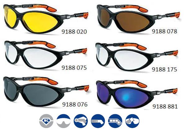 UVEX ponúka ochranné pracovné okuliare rady CYBRIC v týchto prevedeniach:obj.č. 9188 020 - rám čiernooranžový/zorník žltý, optidur 3000 UV