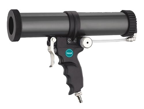 Profi pištoľ pre aplikáciu tmelu a tesniacich hmôt. Pre bežný typ balenia s objemom 310 ml. Plynule nastavitelný tlak, rychle odvzdušnenie zamedzuje zbytkovému vytláčaniu materiálu.