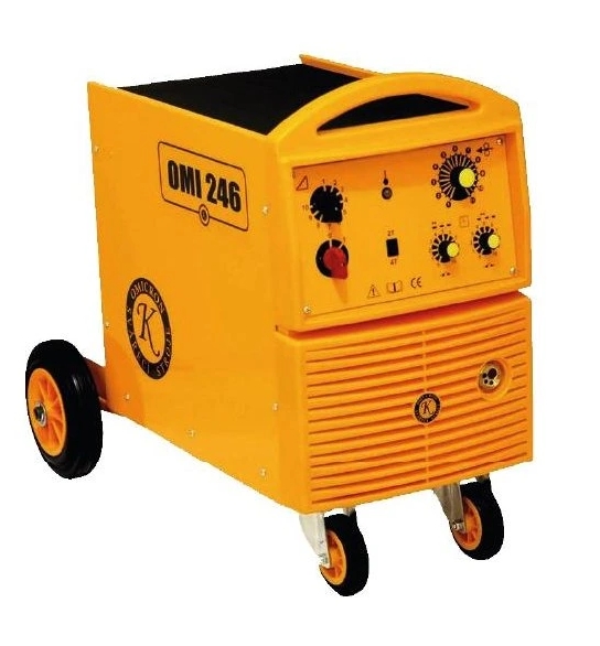 OMI 246 s kvalitným medeným transformátorom a výkonným chladením umožňuje dlhodobé použitie v dielňach aj v ťažkom priemysle. Stroj umožňuje zmenu polarity výstupného napätia pre zváranie trubičkovým drôtom bez použitia ochrannej atmosféry. Pri použití vhodnej ochrannej atmosféry možno zvárať všetky druhy nízkolegovaných a vysokolegovaných ocelí.Zváračka má kvalitný medený transformátor, vďaka čomu je zaťažovateľ zdroja na dobrej úrovni. Zvára s cievkami drotov o hmotnosti 5 - 18 kg. Umožňuje zvárať drôtmi s priemerom 0,6-0,8-1,0-1,2 mm. Napájanie je trojfázové 3x400V. Zváračka je vybavená eurokoncovkou na čelnom panely, čo umožňuje pripojenie horáka v dlžke 3, 4 prípadne 5 m. Zdroj zváracieho prúdu, zásobník drôtu a posuv drôtu sú v jednej kompaktnej plechovej skrini, 2 pevné a 2 otočné kolesá pre premiestňovanie zváračky, madlo pre jednoduchšiu manipuláciu.