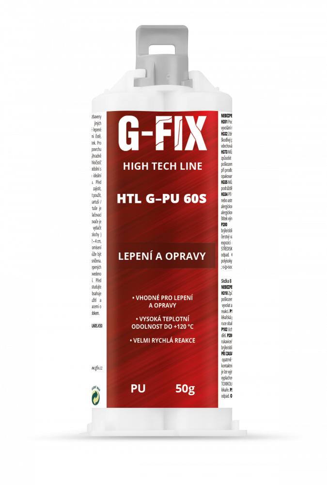 HTL G-PU60S je rýchlo reagujúce dvojzložkové polyuretánové lepidlo, ktoré nájde svoje uplatnenie pri lepení a opravách širokého spektra substrátov. Vyznačuje sa veľmi vysokou pevnosťou, odolnosťou voči poveternostným vplyvom a starnutiu, odolnosťou voči mnohým médiám, je prelakovateľné a neobsahuje rozpúšťadlá. Počas doby spracovania je možné materiál modelovať. Po vytvrdnutí je možné ho trieskovo obrábať a lakovať.Schopnosť vyplňovať škáru: 5mm