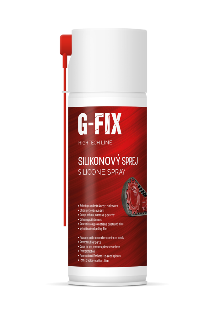SILIKÓNOVÝ SPREJ G-FIX je klzný, oddeľovací, mazací, ochranný a impregnačný prostriedok pre široké spektrum priemyselných aplikácií. Vďaka špeciálnej kombinácii mnohých vysoko kvalitných silikónov, dosahuje vynikajúce výsledky v oblasti výroby a údržby: strojárstvo, elektrotechnický priemysel, výroba a oprava vozidiel, zámočnícke práce, drevospracujúci a papiernícky priemysel.• Zabraňuje oxidácii a korózii na kovoch.