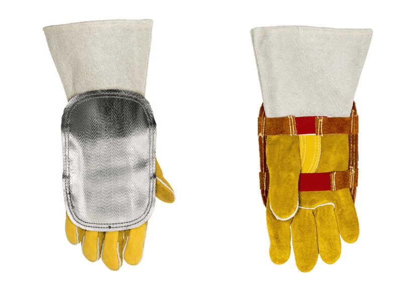 Chráni ruky odrážajúc vysoké teplo. Materiál podkladu je hovädzia štiepenka s pohliníkovaným PFR povrchom. Rozmer štítu je 15x20 cm.MOŽNOSŤ OBJEDNAŤ AJ S INÝM PODKLADOM::