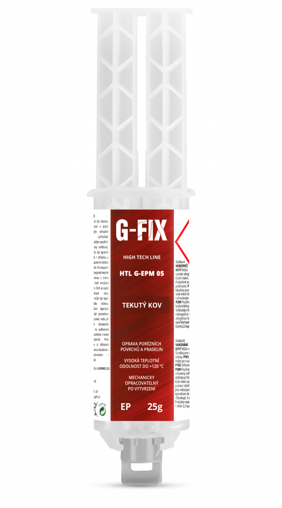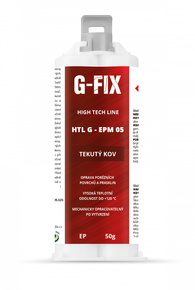 HTL G-EPM 05 ” tekutý kov ” je dvojzložkové, pastózne konštrukčné epoxidové lepidlo plnené kovom, ktoré má široké spektrum použitia v oblasti výroby, montáže a opráv. HTL G-EPM 05 ponúka využitie pre široké spektrum aplikácií ako: opravy, vyplňovanie prasklín, porezity odliatkov, chybne vyvŕtaných otvorov, ale aj lepenie širokého spektra materiálov.Schopnosť vyplňovať škáru: 2-3mm