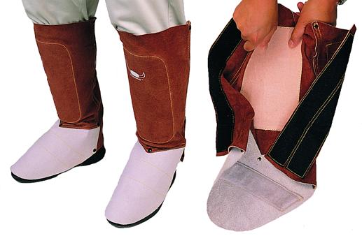 Zváračské ochranné gamaše dĺžky 36 cm, z kvalitnej hovädzej kože s certifikátom podľa normy EN ISO 11611:2015. Slúžia na ochranu od kolien až po prsty, s ohybnou vložkou na holennej kosti a na povrchu boty pre správne vytvarovanie. Šité z teplu a plameňu odolnej hovädzej kože s hrúbkou min. 1mm. Švy sú prešité KEVLAR 5-vrstvovým vláknom, odolným voči vysokým teplotám. Všetky kritické body sú nitované, alebo spevnené zdvojením kože. Nity a patenty sú z bezpečnostných dôvodov elektricky nevodivé. Balenie obsahuje 2ks = pár