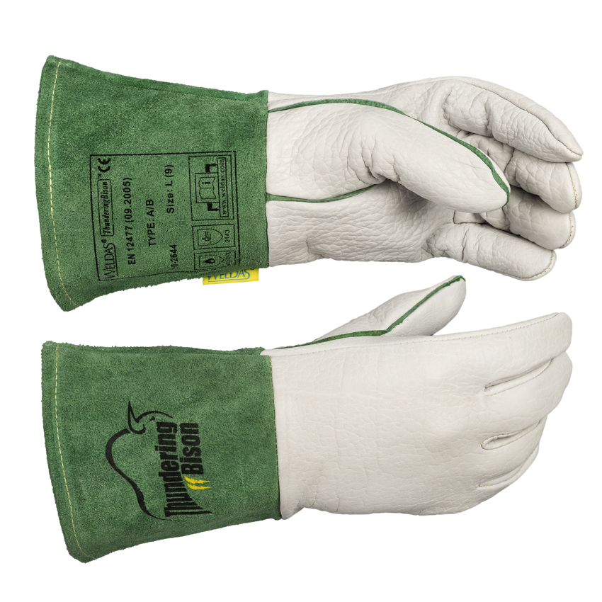 WELDAS Europe ponúka rukavice rady ThunderingBison™ z bizónej kože. Koža severoamerických bizónov je tuhšia ako hovädzie kože, a poskytuje lepšiu odolnosť proti natrhnutiu a odieraniu. Vhodnosť týchto rukavíc je lepšia ako z jelenice, ktoré boli z tohto pohľadu považované za najlepšie. Odolnosť voči teplu a ohňu je lepšia ako prakticky akákoľvek iná kože, ktorá vykazuje lepšie výsledky proti tvrdnutiu aj proti praskaniu. Bizónia koža s obsahom chrómu menej ako 2 mg/kg kože je lepšia pre Vaše zdravie, ale aj pre životné prostredie, pretože sa koža farbí použitím prírodných procesov.